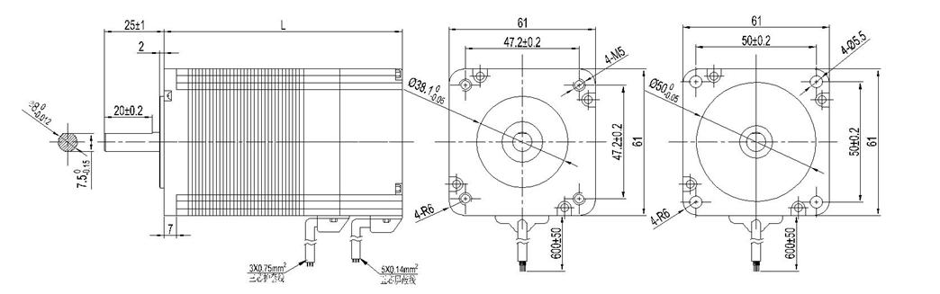 电机机械尺寸Dimensions unit=mm